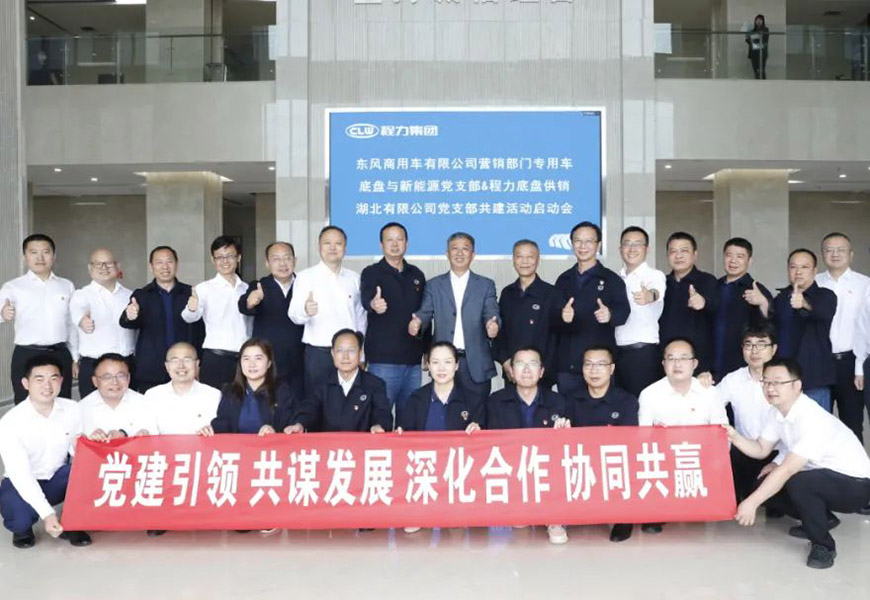 5月末,程力集團(tuán)黨委牽頭,東風(fēng)商用車有限公司營(yíng)銷部門專用車底盤(pán)與新能源黨支部攜手程力底盤(pán)供銷湖北有限公司黨支部,聯(lián)合開(kāi)展“奮進(jìn)新時(shí)代,共創(chuàng)向未來(lái)”共建活動(dòng)。