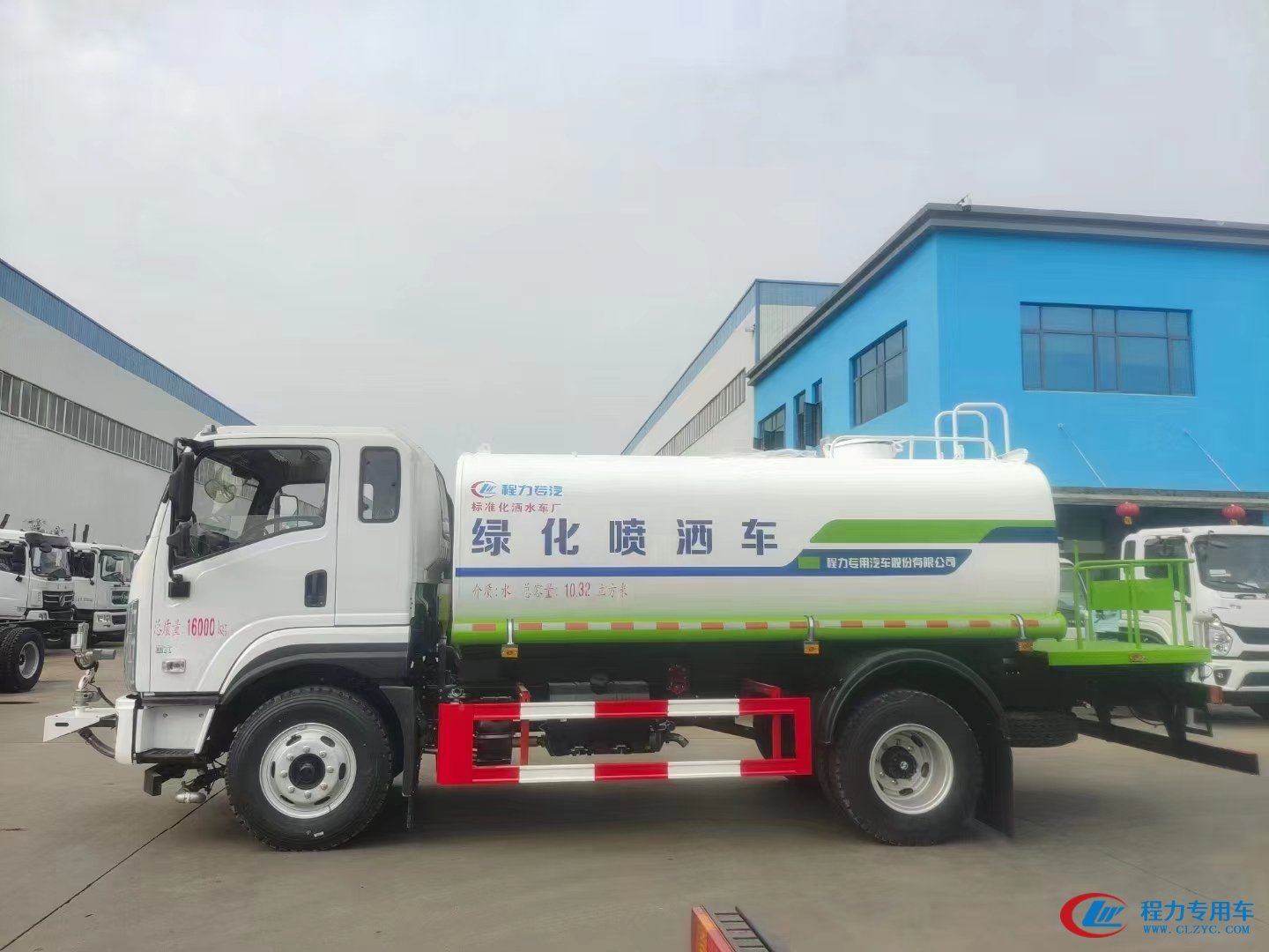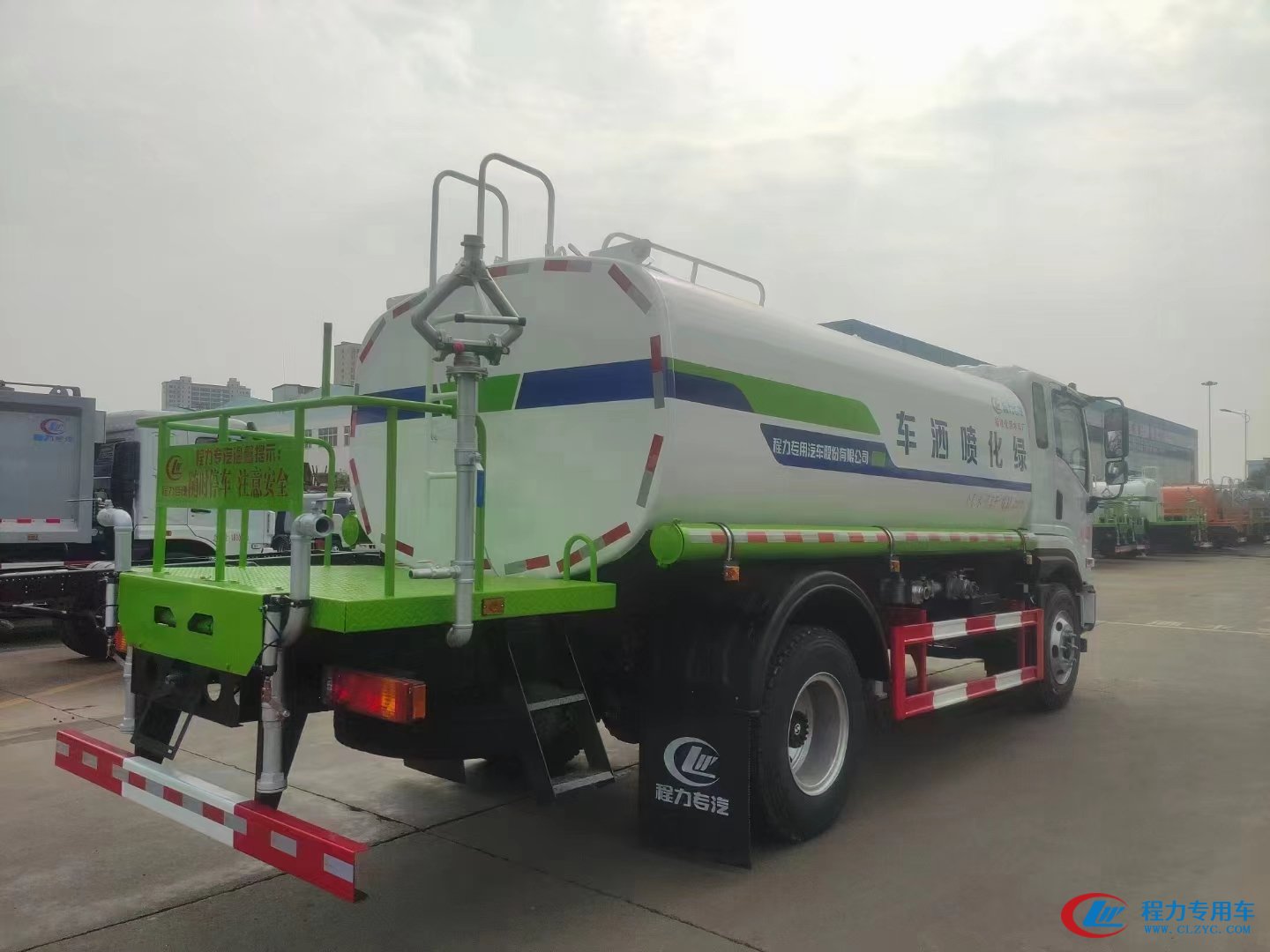 | 上裝配置 | 上裝武鋼優(yōu)質(zhì)碳鋼板,容積12立方,厚度4mm,封頭5mm,前后封頭機器人自動焊,內(nèi)設(shè)隔浪板,帶液位計, 配程力原廠大功率灑水泵,帶駕駛室電控操作,前沖后灑4個新式不銹鋼切斷閥,前沖 后灑 側(cè)噴 后高炮,后高炮可調(diào)節(jié)柱狀 雨狀和霧狀,新式?jīng)_孔工作平臺,主管道加粗,副管道全采用優(yōu)質(zhì)鍍鋅管道,帶自吸自排,自流閥,消防接頭,過濾裝置,邊燈帶電,其他標配… | ||